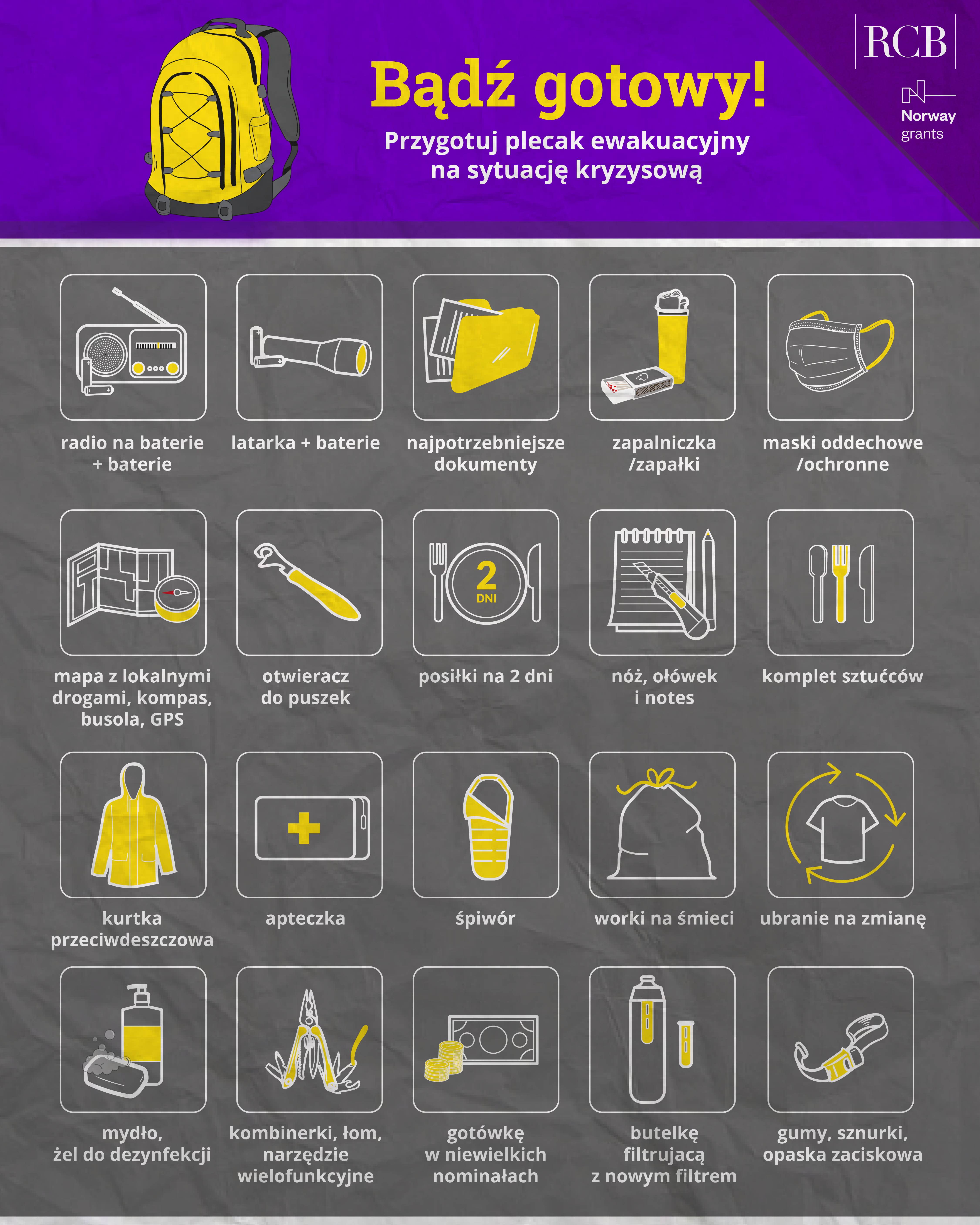 Plecak ewakuacyjny jest niezbędnym elementem przygotowań na wypadek nagłych sytuacji kryzysowych. Powinien on zawierać najważniejsze rzeczy, takie jak dokumenty, leki, woda, żywność na kilka dni, latarkę czy powerbank.