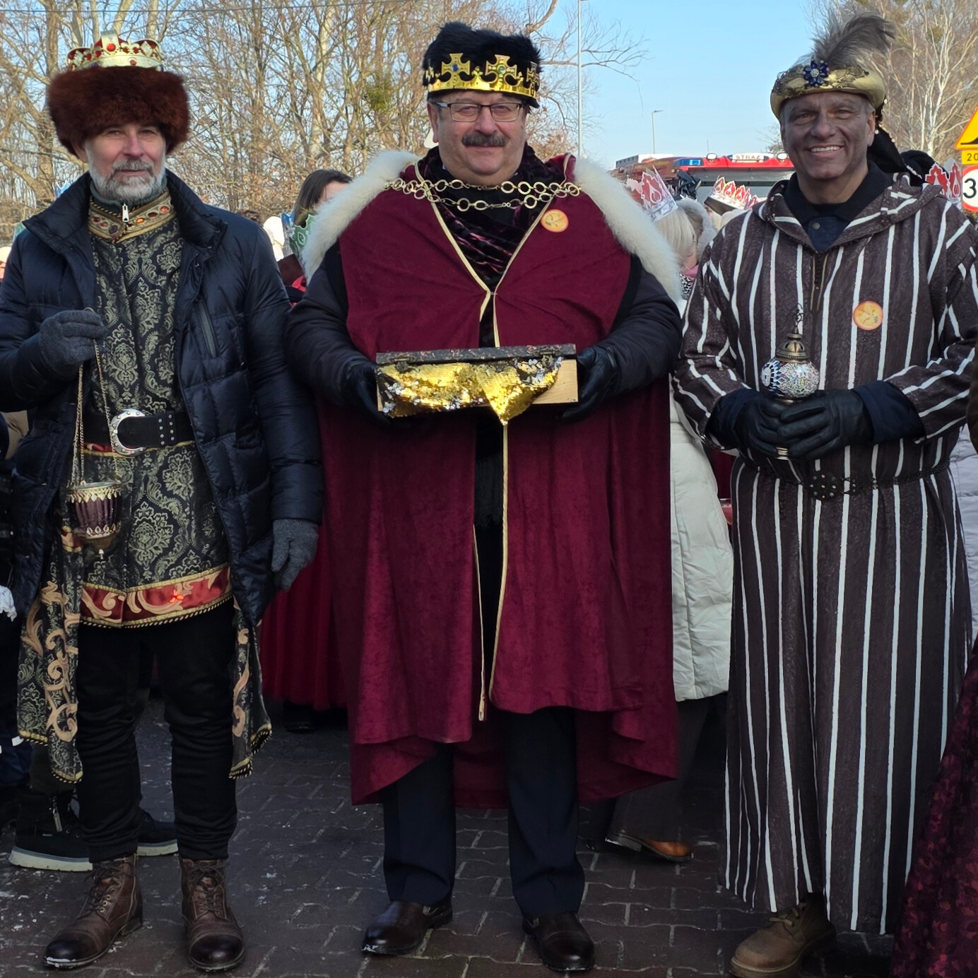 Uroczystości rozpoczęliśmy wspólną modlitwą podczas Mszy Świętej, po której barwny korowód wyruszył w drogę. Na czele, tuż za gwiazdą, w rolach Mędrców wędrowali: Jarosław Jagielski – Wójt Gminy Czernica, Grzegorz Rembikowski – Przewodniczący Rady Gminy Czernica, Sołtys Dobrzykowic i Ireneusz Wójciów – lokalny przedsiębiorca. W korowodzie szli także: Anna Sobolak – Posłanka na Sejm RP, Włodzimierz Chlebosz – Starosta Powiatu Wrocławskiego, przedstawiciele Rady Gminy Czernica oraz Sołtysi naszych wsi, a także Konsul Honorowy Francji we Wrocławiu, Didier Guisy.