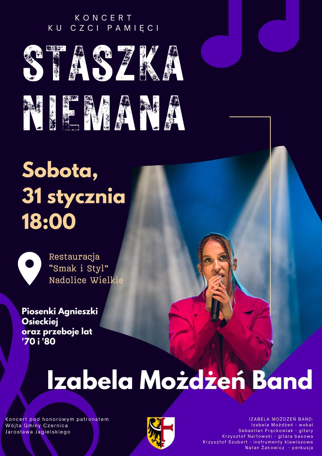 31 stycznia w restauracji Smak i Styl w Nadolicach Wielkich odbędzie się koncert upamiętniający zmarłego jesienią współwłaściciela lokalu – Staszka Niemana. Izabela Możdżeń Band wykona utwory Agnieszki Osieckiej oraz przeboje lat 70. i 80.
