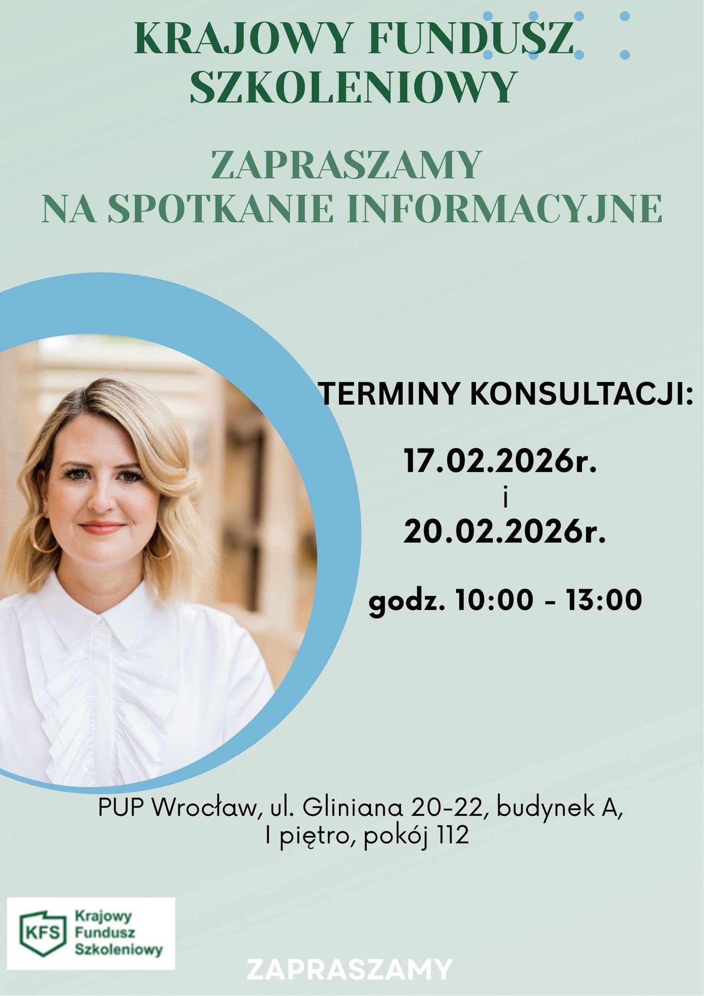 W imieniu Powiatowego Urzędu Pracy we Wrocławiu zapraszamy przedsiębiorców na spotkanie informacyjne dotyczące Krajowego Funduszu Szkoleniowego (KFS).