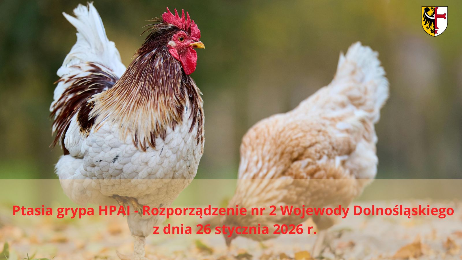 Zapraszamy do zapoznania się z treścią Rozporządzenia nr 2 Wojewody Dolnośląskiego z dnia 26 stycznia 2026 r. w sprawie wystąpienia w powiecie oławskim wysoce zjadliwej grypy ptaków i wyznaczeniem przez Wojewodę strefy objętej zakażeniem wysoce zjadliwą grypą ptaków (HPAI)