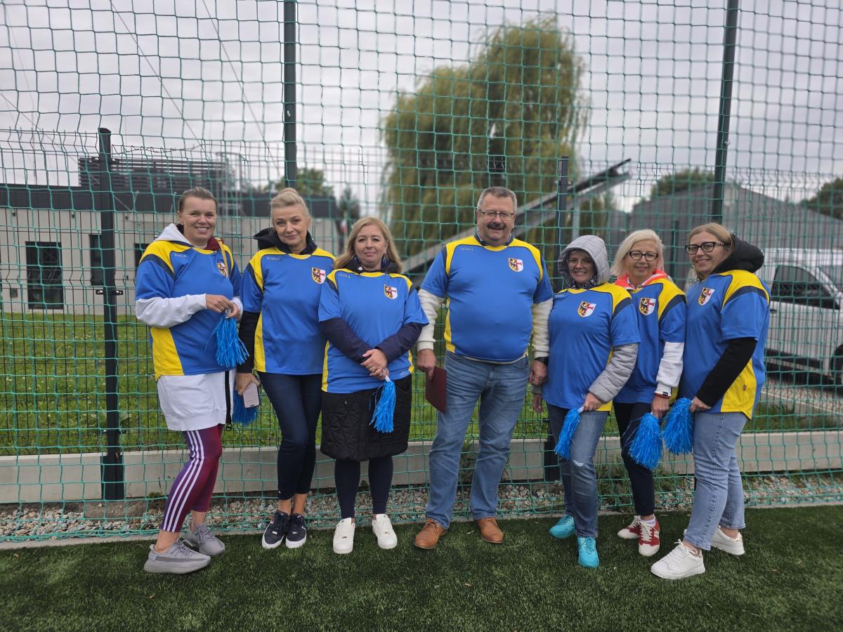Wśród kibiców najbardziej wyróżniały się reprezentantki z naszej gminy. Panie były świetnie przygotowane i wspaniale kibicowały naszym piłkarzom. Na trybunach zasiedli również przedstawiciele WKS Śląsk Wrocław.