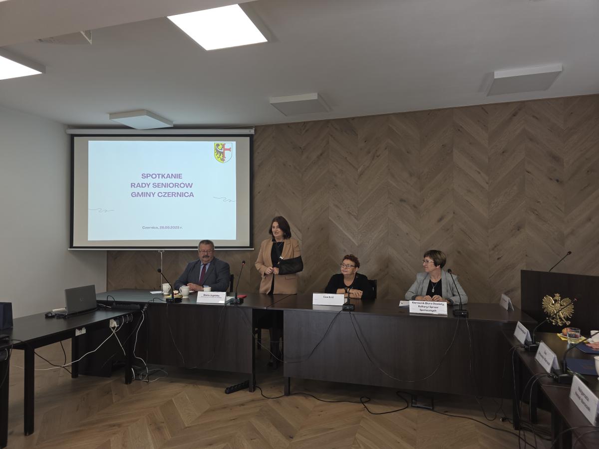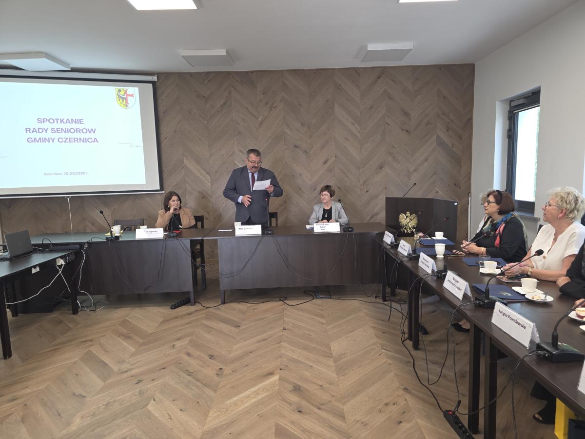Dziś, tj. 26 września 2025r., odbyła się inauguracyjna I Sesja Rady Seniorów Gminy Czernica. Spotkanie otworzył Jarosław Jagielski, Wójt Gminy Czernica, który przywitał radne powołane w skład Rady Seniorów Gminy Czernica oraz zaproszonego Gościa Beatę Jagielską – radną Rady Seniorów Powiatu Wrocławskiego i przedstawiciela Gminy Czernica w Zespole Ekspertów ds. Polityki Senioralnej przy Wojewodzie Dolnośląskim.