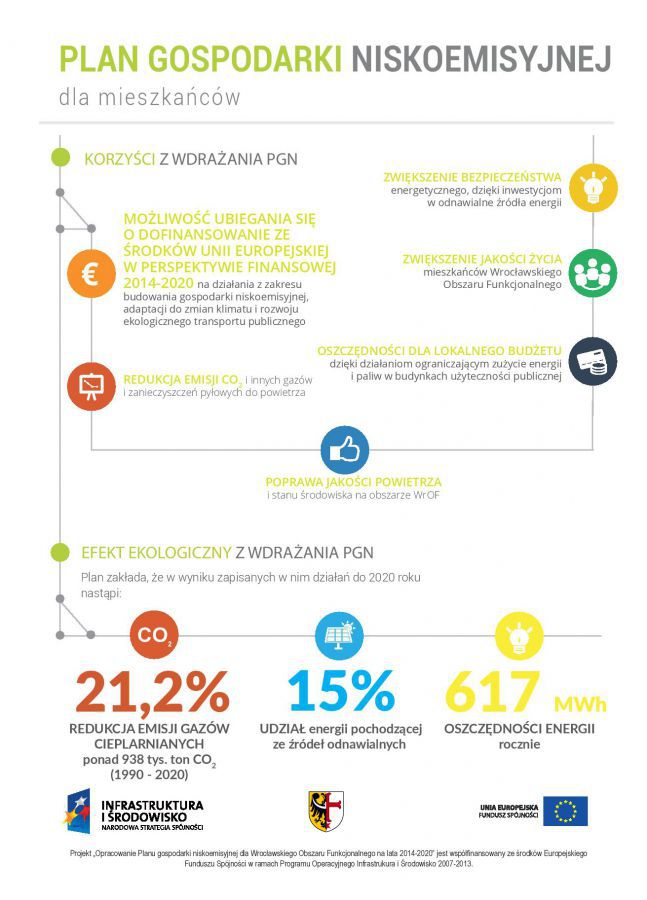 „Projekt „Plan gospodarki niskoemisyjnej dla Zintegrowanych Inwestycji Terytorialnych Wrocławskiego Obszaru Funkcjonalnego” jest współfinansowany przez Unię Europejską z Europejskiego Funduszu Spójności w ramach Programu Operacyjnego Infrastruktura i Środowisko 2007-2013 Działanie 9.3 konkursu nr 2/POIiŚ/9.3/2013 „Termomodernizacja obiektów użyteczności publicznej – plany gospodarki niskoemisyjnej”