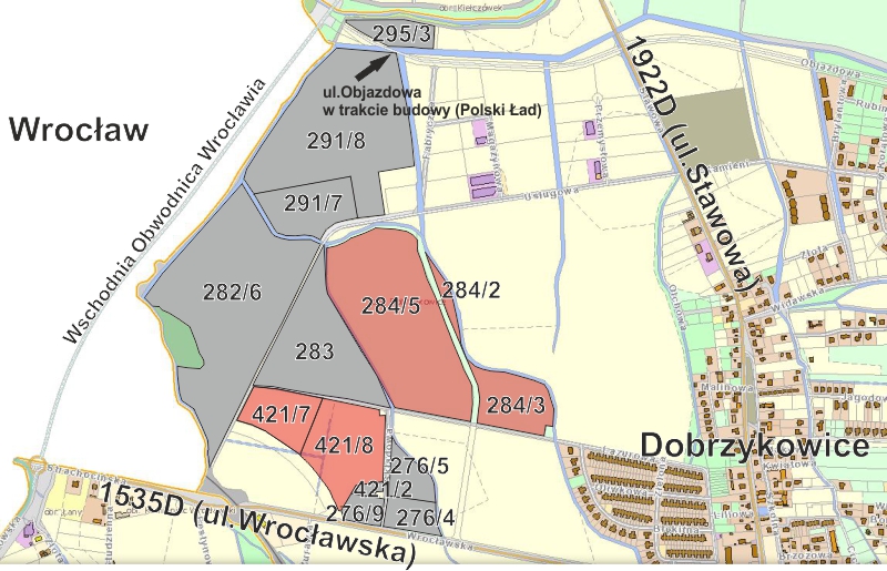 - Obszar terenów inwestycyjnych w Dobrzykowicach objęty jest miejscowym planem zagospodarowania przestrzennego – uchwały nr XIV/146/2020 Rady Gminy Czernica z dnia 31 marca 2020 r. w sprawie miejscowego planu zagospodarowania przestrzennego wsi Dobrzykowice (północ), gmina Czernica.