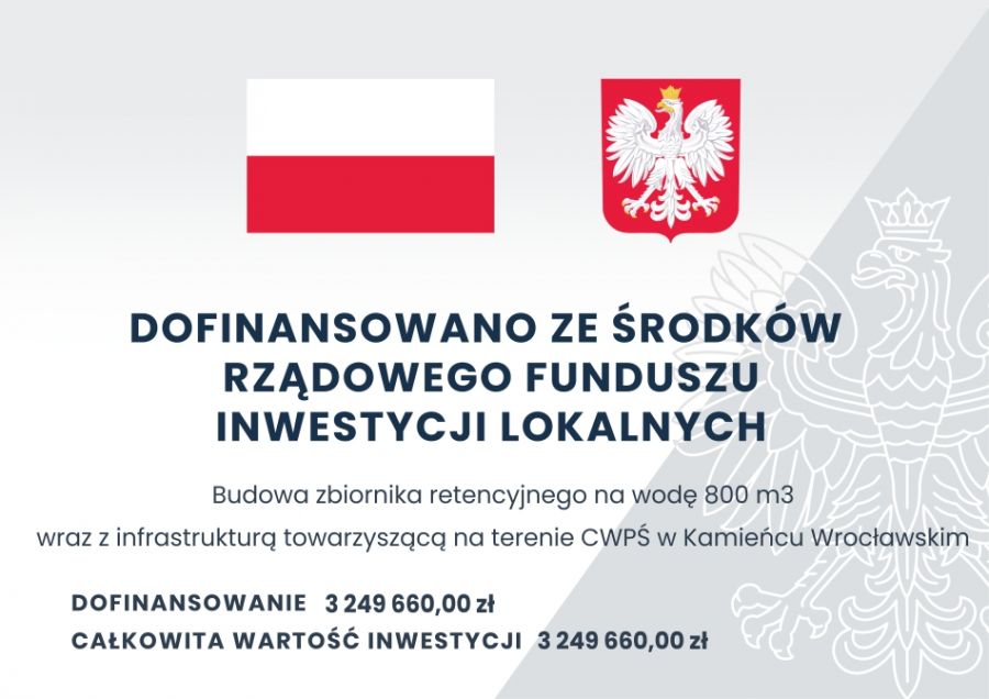 "Budowa zbiornika retencyjnego na wodę 800 m3 wraz z infrastrukturą towarzyszącą na terenie CWPŚ w Kamieńcu Wrocławskim"
